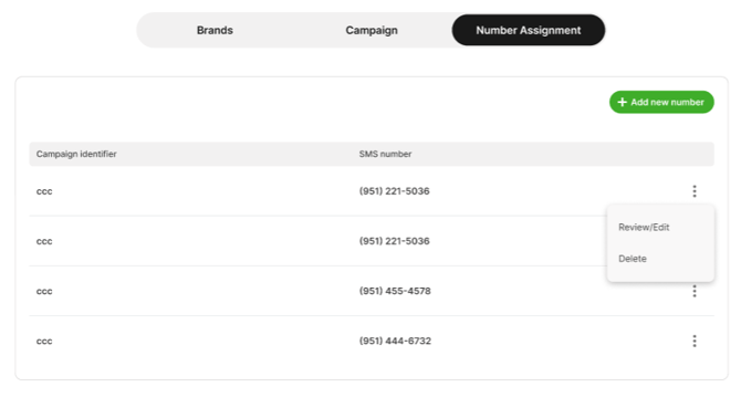 Under the “Number Assignment” tab, navigate to the overflow menu and select “Delete.”